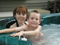 Wyatt does not like the hot tub because he doesn't like ANYTHING hot. He refuses to put his hand in the water to test the temp because the thing is called a HOT tub. He finally gave in and tipped the tippy tip top of his finger into the water for a nano second and said "See, I tried it for you and it is too hot!